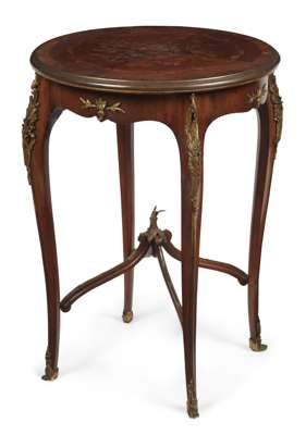 LOUIS XV STYLE GILT METAL MOUNTED KINGWOOD AND MARQUETRY SIDE TABLE