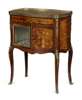 LOUIS XV STYLE KINGWOOD AND MARQUETRY MARBLE TOPPED VITRINE