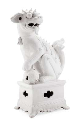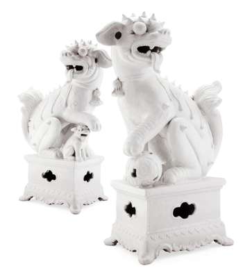 possibly Luneville, in the Japonesque manner, the rampant beasts with blanc de chine glaze, raised on pierced square bases (2)