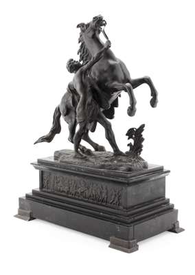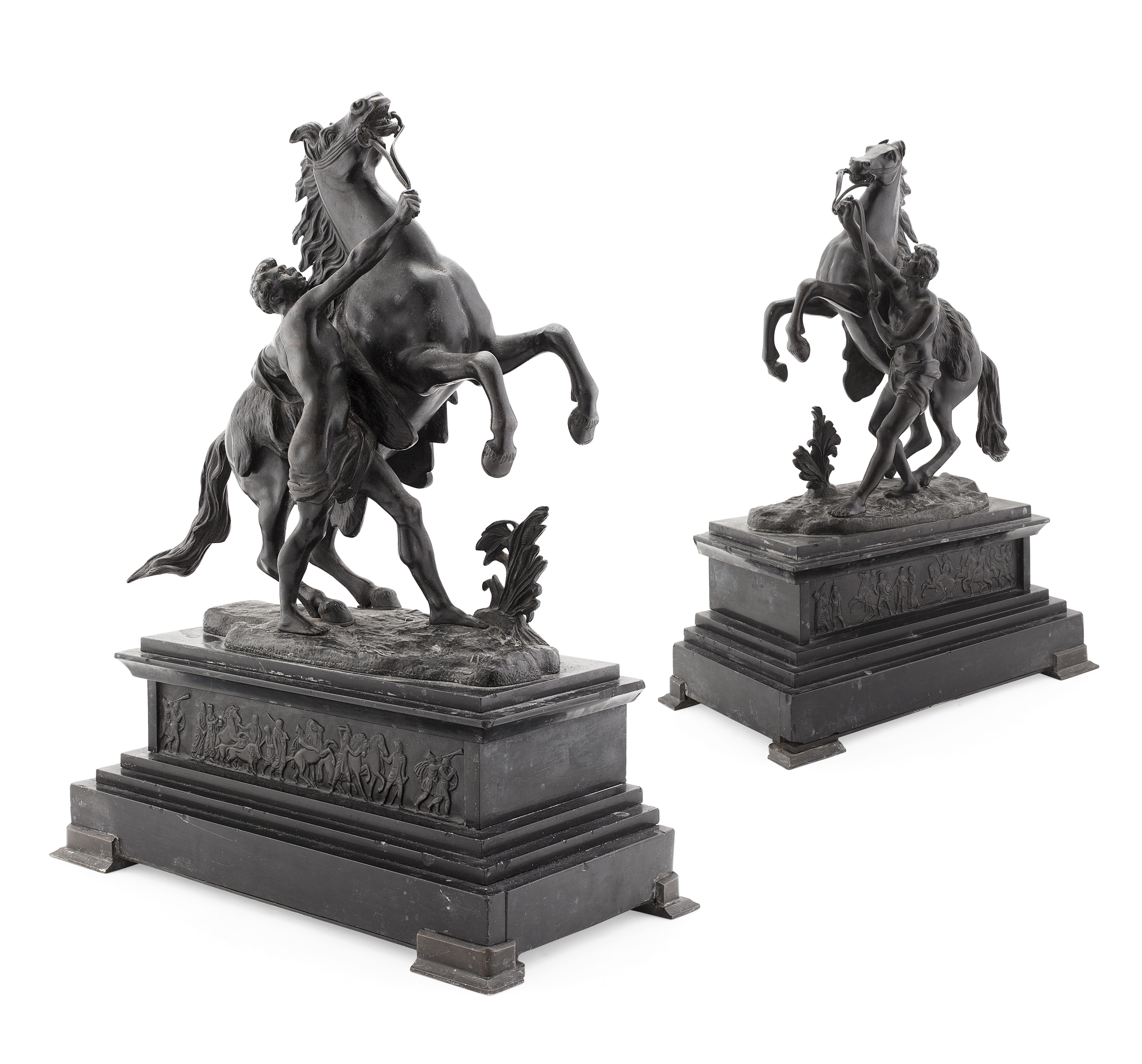 PAIR OF FRENCH BRONZE MODELS OF THE MARLY HORSES, AFTER GUILLAUME COUSTOU (FRENCH 1677-1746)