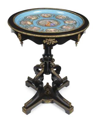 NAPOLEON III PORCELAIN MOUNTED AND EBONISED GUERIDON