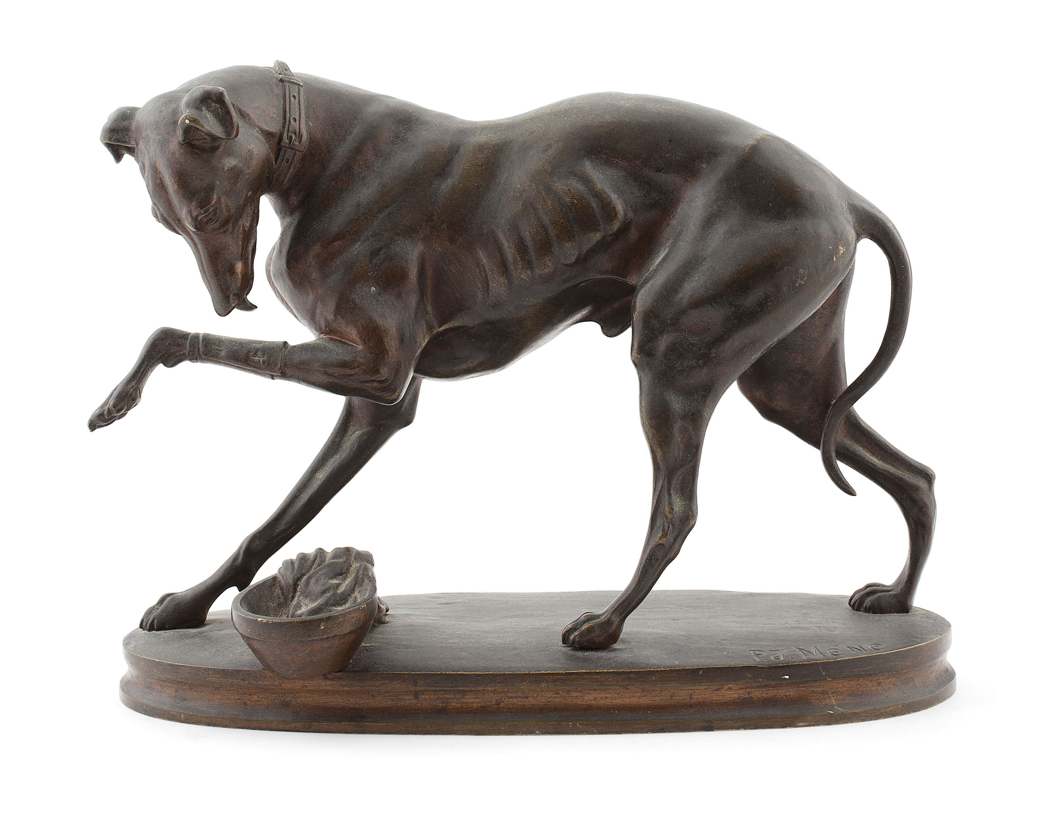 bronze, brown patina, raised on an oval base and signed P J Mene