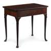 the rounded rectangular dish top above a plain frieze raised on lappet carved turned tapered legs ending in pad feet