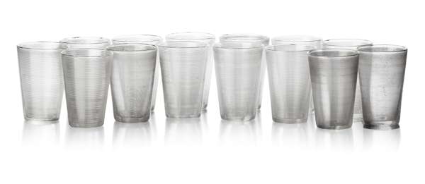 SET OF FOURTEEN RUSSIAN IMPERIAL GLASS WORKS VODKA GLASSES