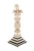 the hinged cover surmounted by an elephant finial, opening to reveal a cylindrical void interior, the square and facetted column carved with foliate scroll panels, raised on a stepped gadrooned and ebony veneered base ending in squat bun feet, in a fitted blue velvet lined wooden case