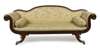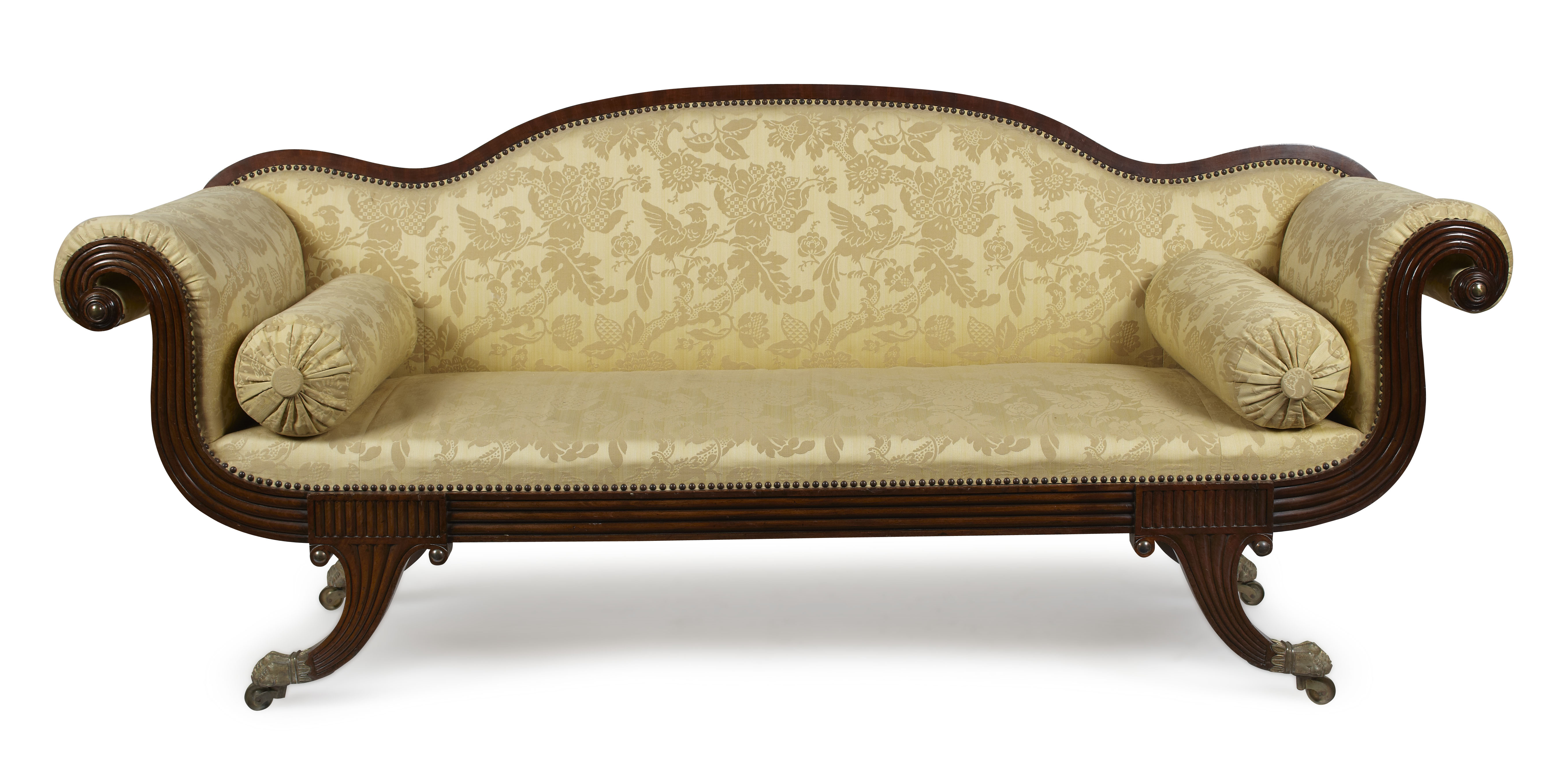 REGENCY MAHOGANY AND UPHOLSTERED SETTEE