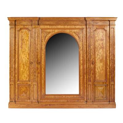 SCANDINAVIAN FIVE PIECE SATIN AND KARELINIAN BIRCH AND MARQUETRY BEDROOM SUITE