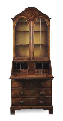 QUEEN ANNE STYLE WALNUT AND MAHOGANY BUREAU BOOKCASE