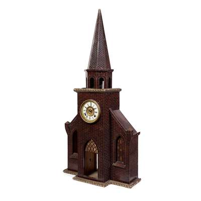 LATE VICTORIAN SIMULATED TORTOISESHELL AND INLAY NOVELTY MANTEL CLOCK