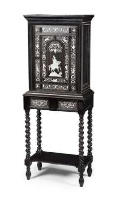FLEMISH EBONY AND IVORY INLAID CABINET ON STAND