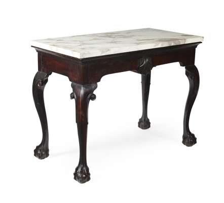 IRISH GEORGE II MAHOGANY AND MARBLE TOP SIDE TABLE