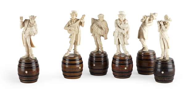 GROUP OF SIX GERMAN CARVED IVORY BAND MEMBERS