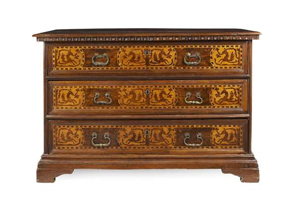 NORTH ITALIAN WALNUT MARQUETRY COMMODE