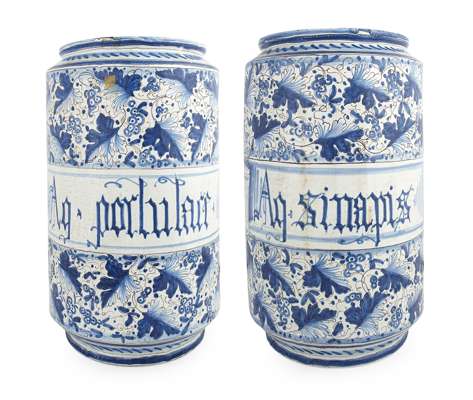 PAIR OF ITALIAN MAIOLICA DRUG JARS