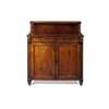 the raised gallery back above two frieze drawers and two panelled cupboard doors, raised on turned feet