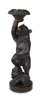 polychrome painted, the figure standing with one paw raised holding a carved dish, on a circular plinth base