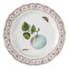 centrally painted with fruit and insects within a puce trellis border, unmarked