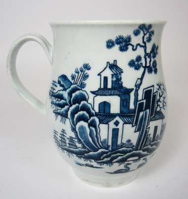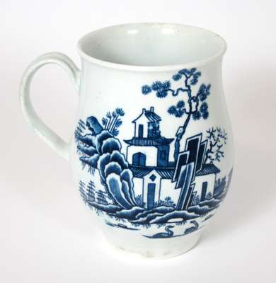 EARLY ENGLISH BLUE AND WHITE PORCELAIN TANKARD