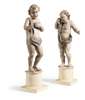 each standing figure with traces of original polychrome decoration, now mounted on modern yellow painted pedestal bases (2)