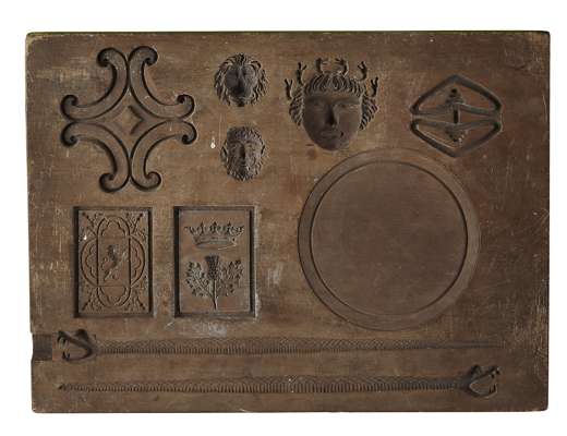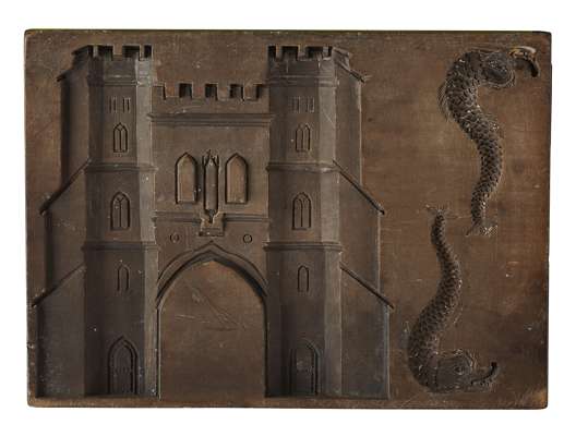 each rectangular wood section carved with various heraldic devices, castles, classical masks, serpents, and border details, possibly related to the Dukes of Northumberland (2)