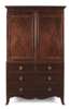 GEORGE III MAHOGANY, ROSEWOOD AND BOXWOOD LINEN PRESS