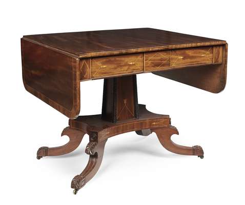 SCOTTISH REGENCY MAHOGANY CROSSBANDED AND INLAID SOFA TABLE