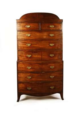 REGENCY MAHOGANY AND INLAY BOWFRONT CHEST ON CHEST