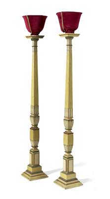 PAIR OF REGENCY STYLE POLYCHROME STANDARD LAMPS