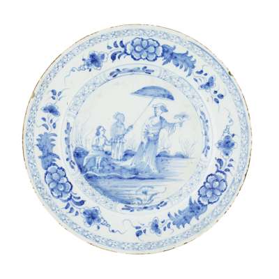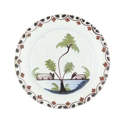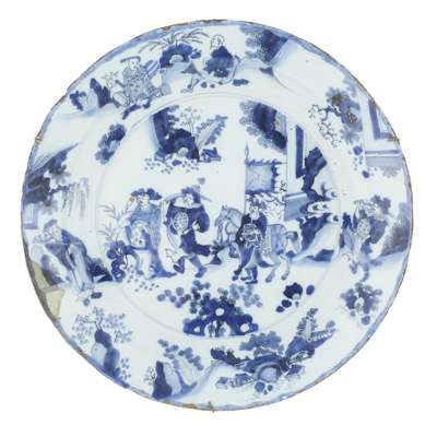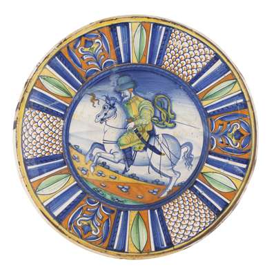 ITALIAN MAIOLICA 'GALLOPING HORSEMAN' DISH