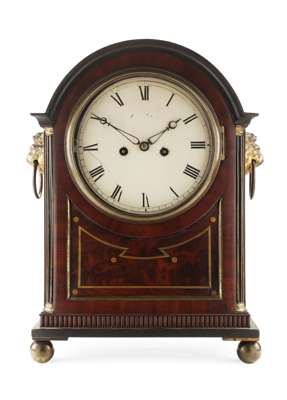 REGENCY MAHOGANY, EBONISED AND BRASS MOUNTED BRACKET CLOCK BY PETER KEIR, FALKIRK