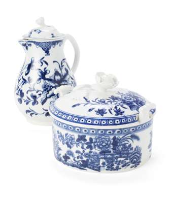 TWO PIECES WORCESTER BLUE AND WHITE PORCELAIN