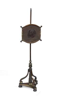 REGENCY MAHOGANY AND BRASS INLAY POLE SCREEN