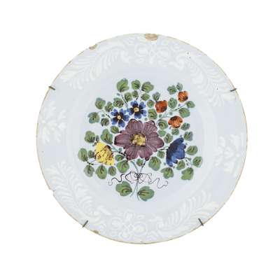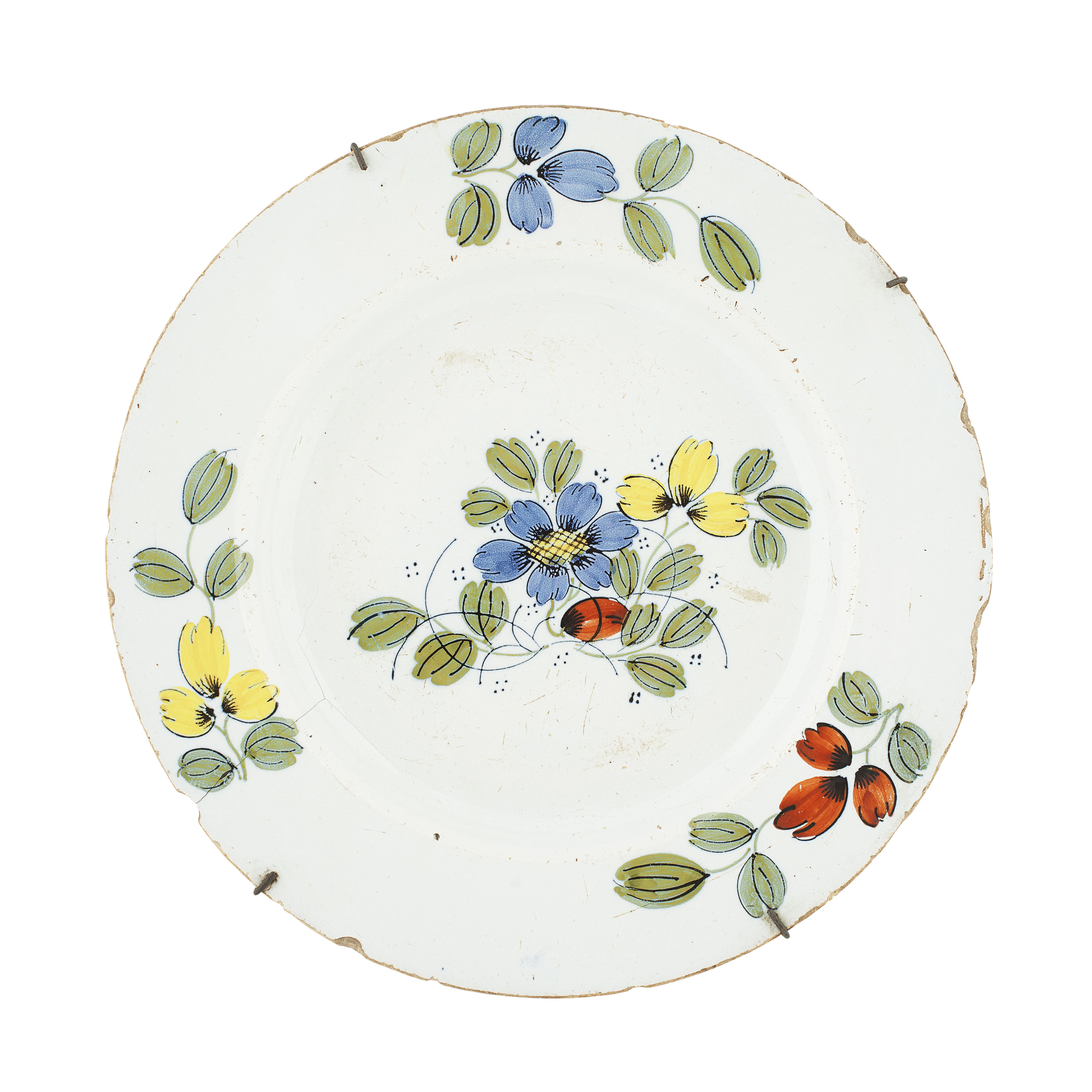 THREE ENGLISH DELFT POLYCHROME TIN GLAZED PLATES