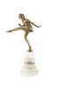 in the manner of Demetre Chiparus, modelled as a dancing girl with feathered headdress, raised on an onyx pedestal
