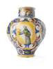 For a similar shaped Venetian jar in the Louvre collections see J. Giacomotti, Les majoliques des Musées nationaux, Paris 1974, cat.1230, p.415. For similar distinctive Venetian strap work cartouches, see J. Poole, Italian Maiolica and incised slipware in the Fitzwilliam Museum,cats.448-9, p.418 Cambridge, Cambridge, 1995