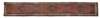 the rust red field with three indigo hexagonal medallions suspending pendants, similar spandrels, within ivory geometric border between bands