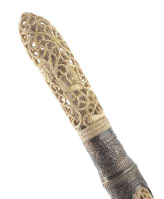 BURMESE CARVED IVORY MOUNTED DHA DAGGER