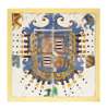 decorated in the 'cuenca' technique in blue, aubergine, green and yellow glazes with an unidentified coat of arms, mounted on a wooden frame
