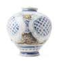 of swollen baluster form, painted in blue, manganese and orange-yellow, with four lobed reserves with blue cross designs