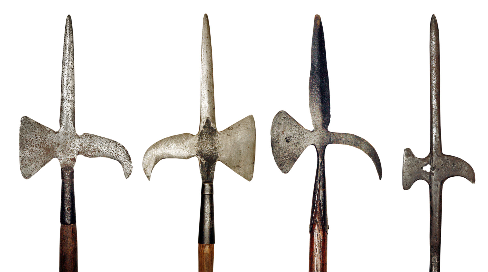 GROUP OF FOUR SMALL HALBERDS