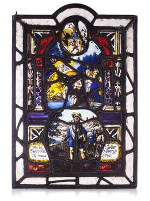 TWO GERMAN STAINED GLASS LEADED PANELS