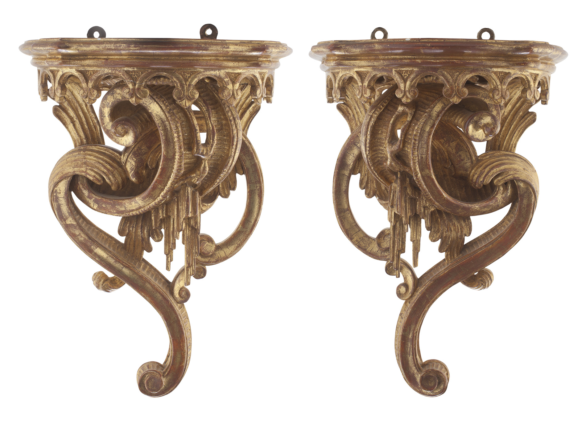 PAIR OF GEORGE II STYLE GILTWOOD WALL BRACKETS
