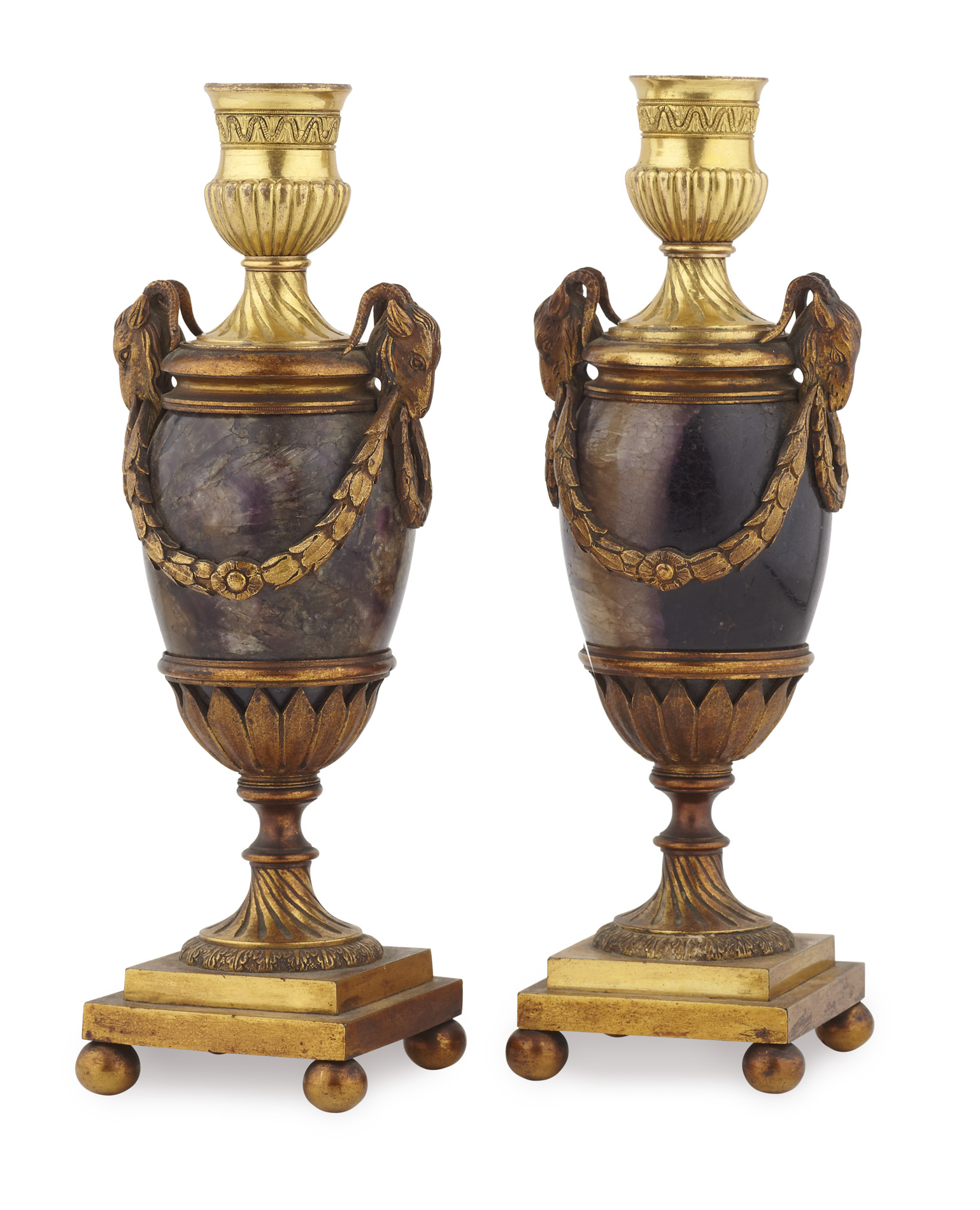 PAIR OF GEORGE III ORMOLU MOUNTED BLUE JOHN CASSOLETTES, ATTRIBUTED TO MATTHEW BOULTON