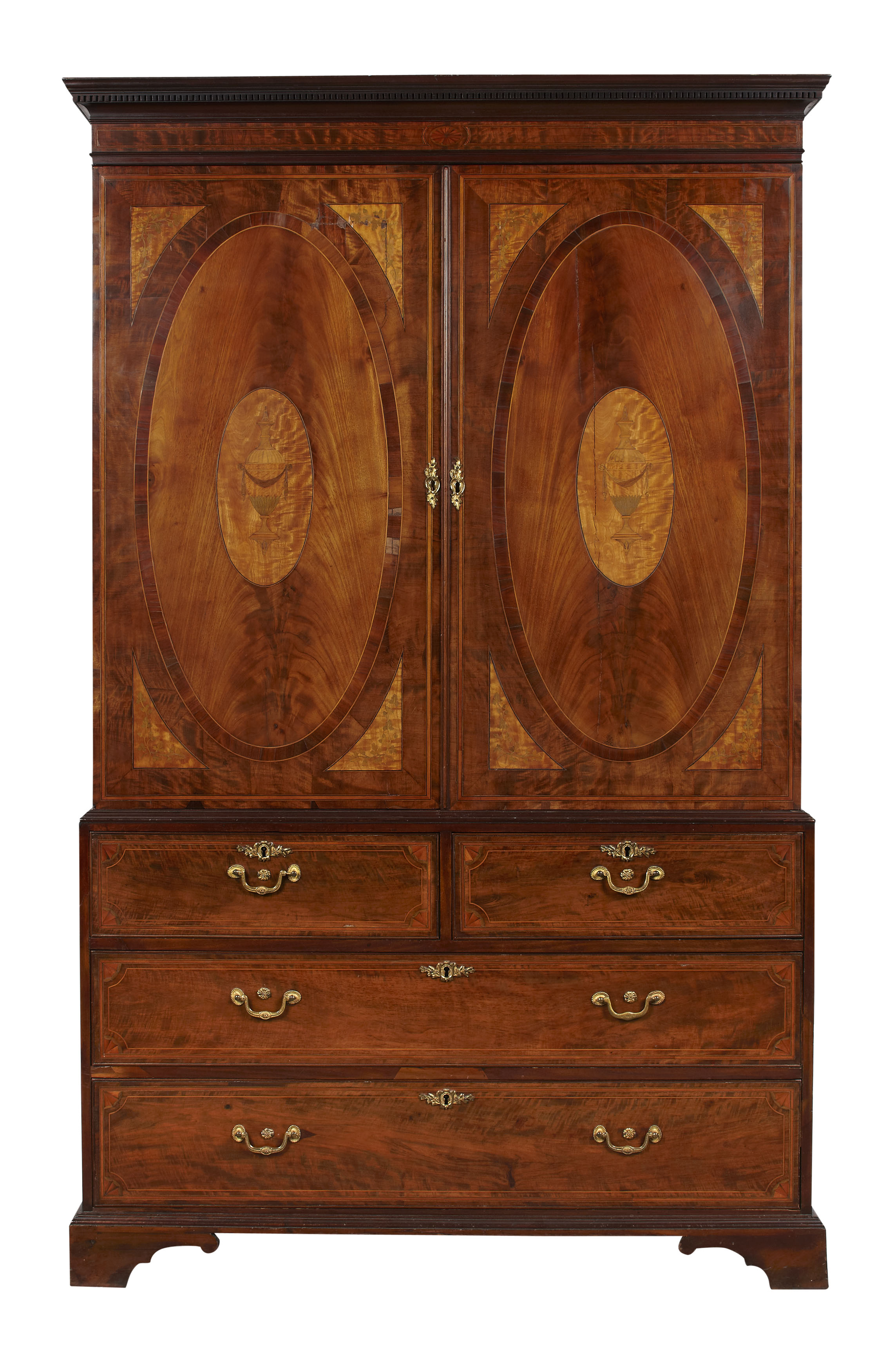 GEORGE III MAHOGANY AND SATINWOOD INLAY LINEN PRESS