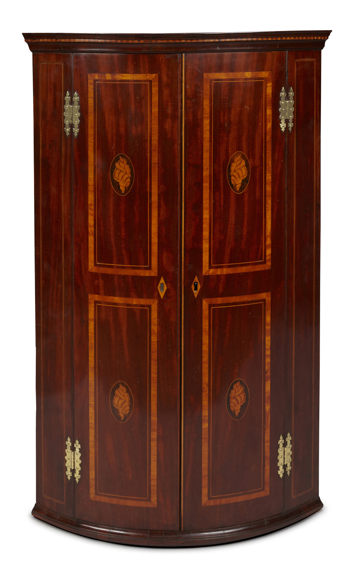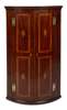 GEORGE III MAHOGANY AND INLAY BOWFRONT CORNER CUPBOARD