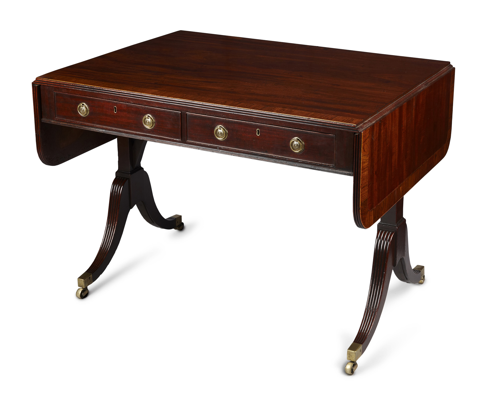 REGENCY MAHOGANY AND ROSEWOOD CROSSBANDED SOFA TABLE