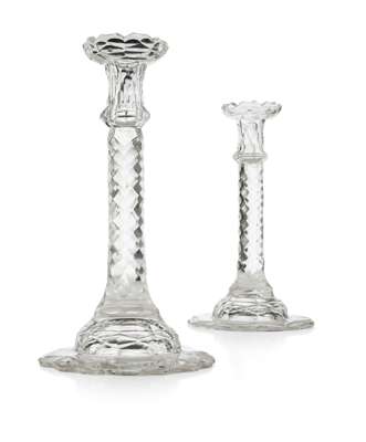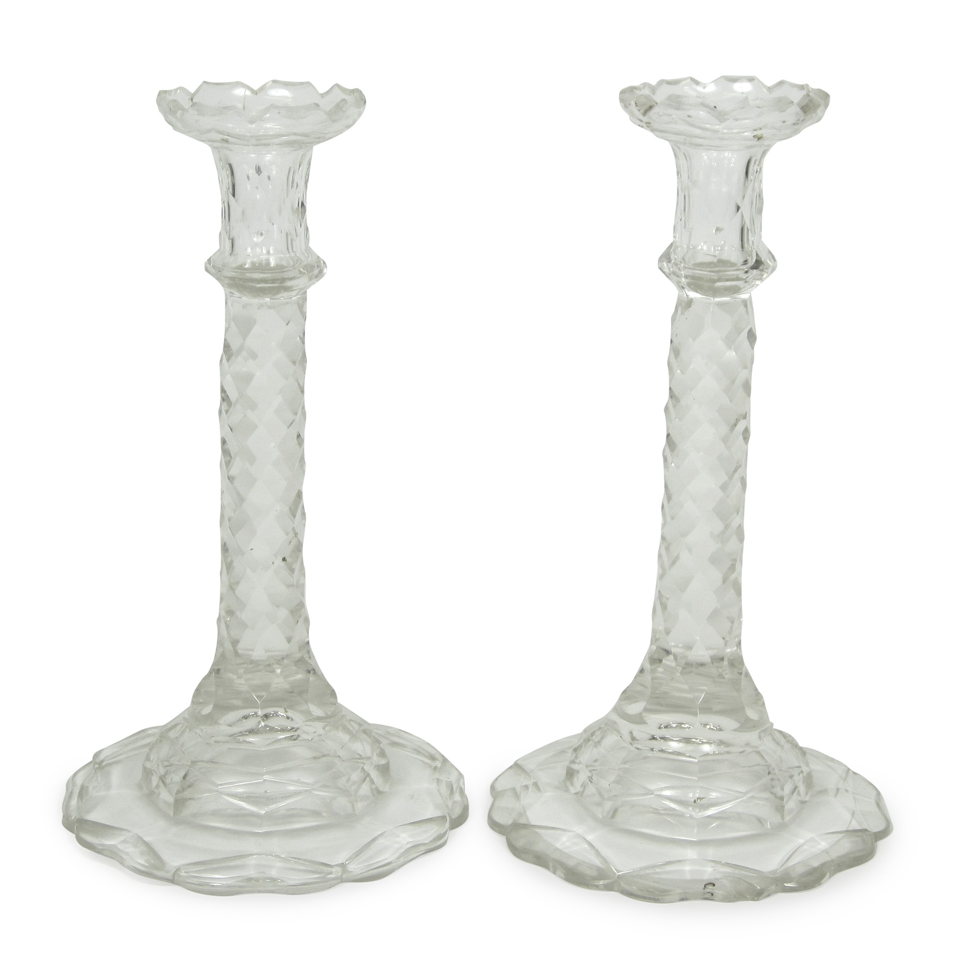 PAIR OF ANGLO-IRISH CUT GLASS CANDLESTICKS