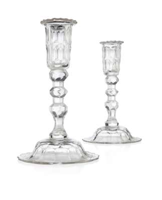 the deep faceted candle nozzle with an everted rim above a knopped stem on a domed foot with a barbed edge (2)
