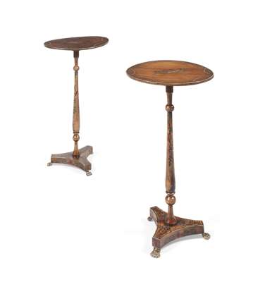 PAIR OF EDWARDIAN MAHOGANY AND PAINTED CANDLESTANDS
