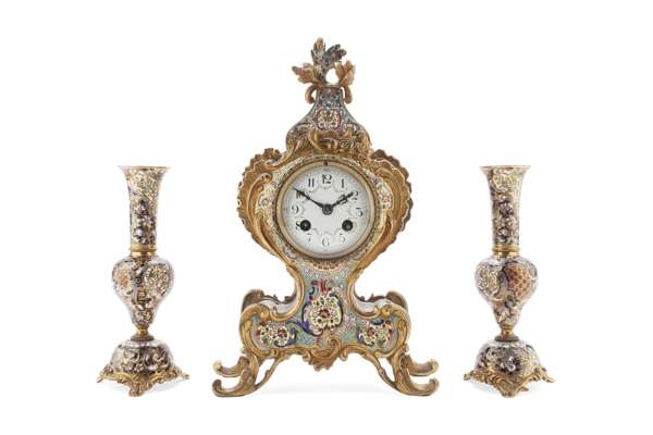 ASSEMBLED FRENCH CLOISONNE CLOCK GARNITURE